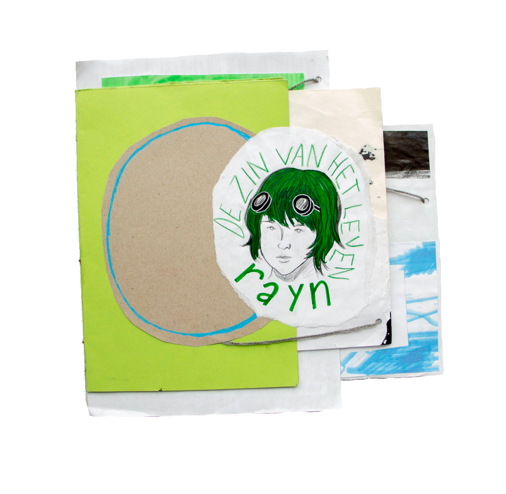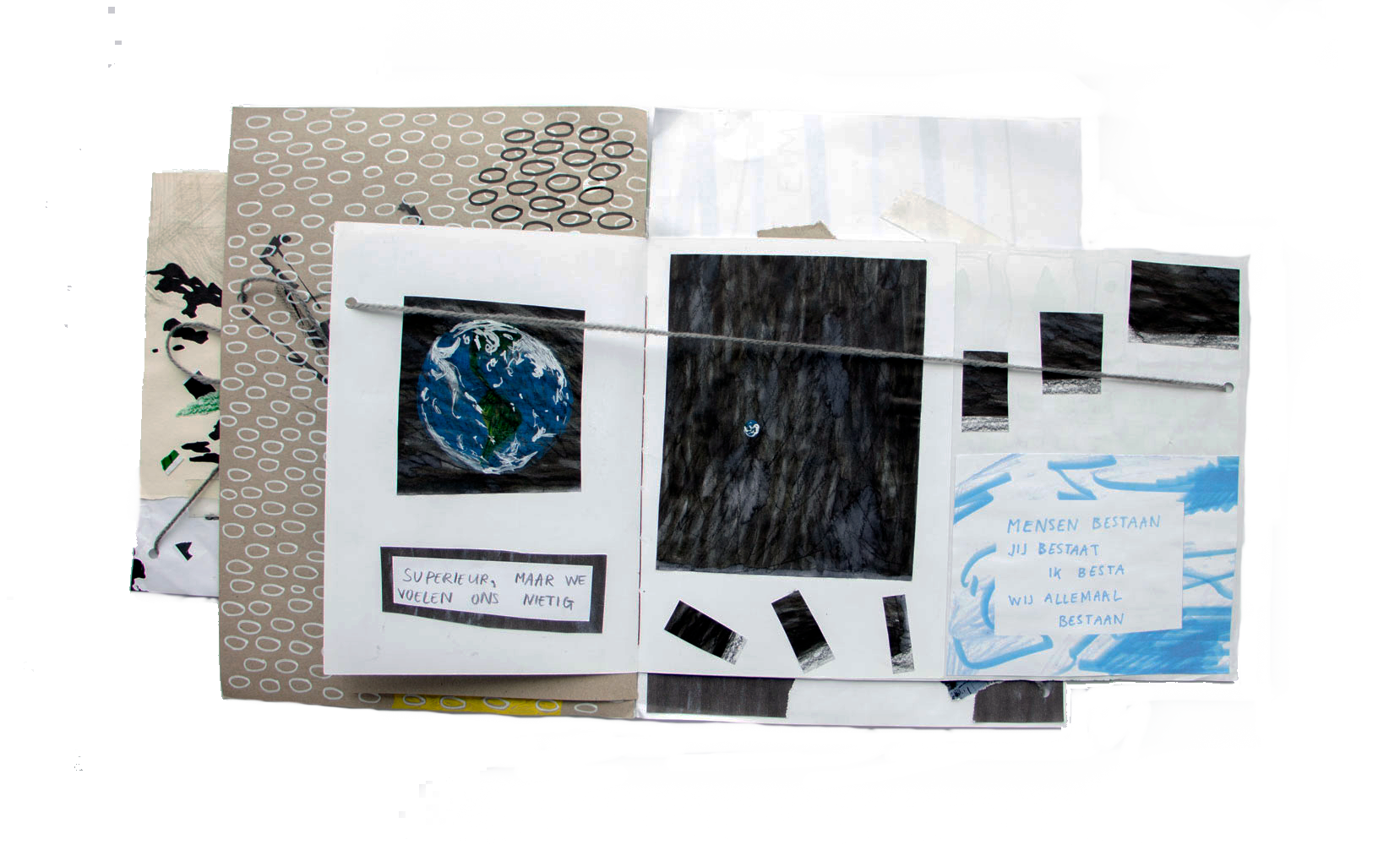 A thread runs through the booklet that sometimes makes it difficult to turn the page. There are circles connected to it, which mark the relation between nature and humanity, growing more distant with each other every page.
